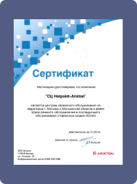 Персонал сервисного центра постоянно проходит курсы повышения квалификации и изучает слабые места новых моделей Ariston. Обучается использовать специнструмент и быстро диагностировать поломки.
